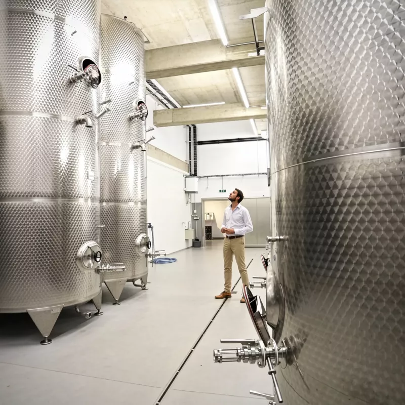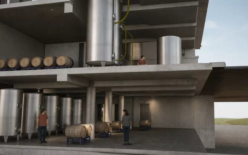 Hlavní princip gravitační výroby vína je jednoduchý: víno se pohybuje pouze pomocí gravitace, žádná čerpadla, která vína mechanicky namáhají.