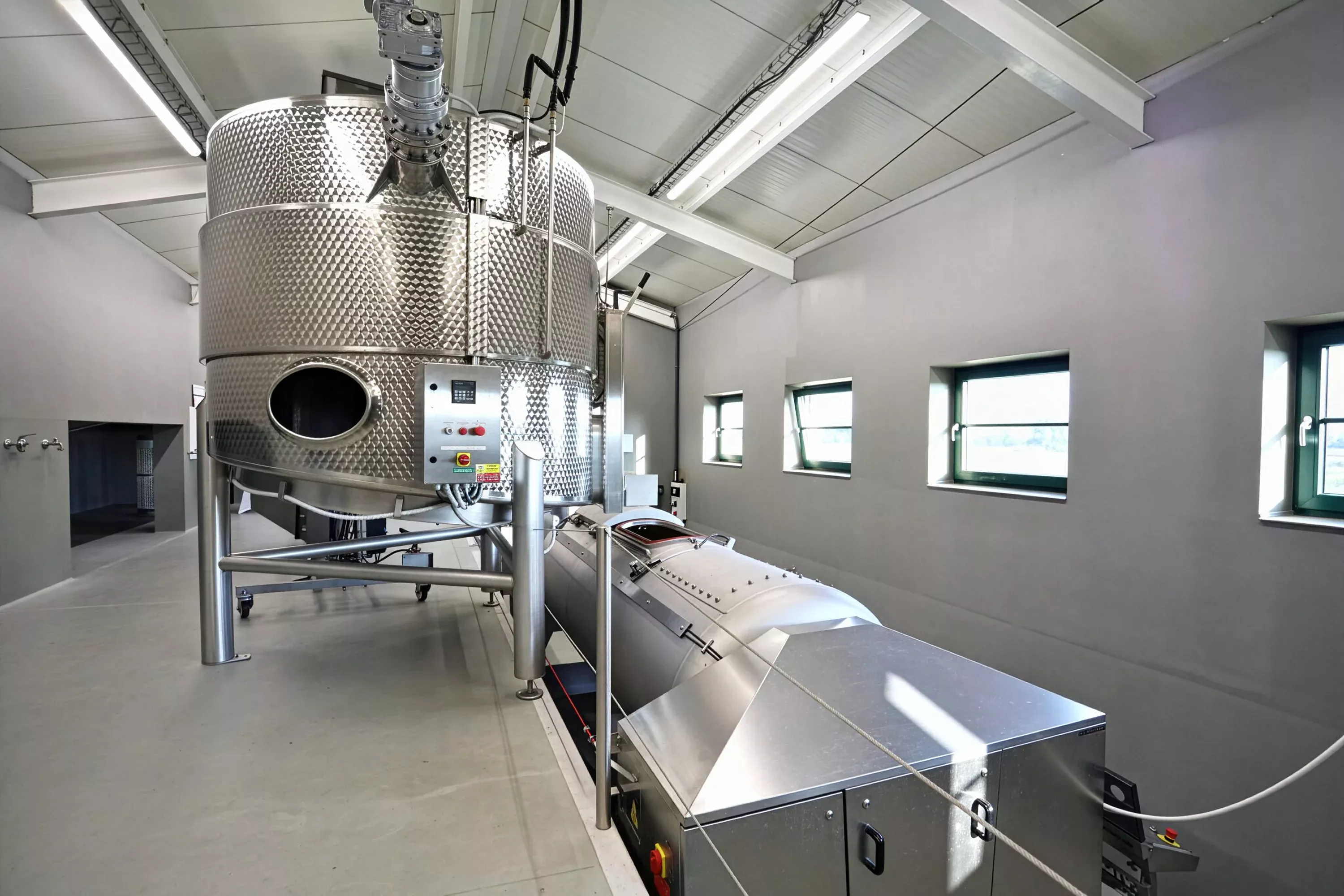 Vinařské vybavení, které je rozmístěno v šesti technologických patrech včetně podzemí, je navrženo tak, aby samotná gravitace – zdroj čisté energie – postačila k přepravě od bobule, přes rmut, prokvašený rmut, mošt, odkalený mošt, mladé víno, až k zralému hotovému vínu tím nejjemnějším přirozeným pohybem. Minimální vzdálenosti mezi operacemi v jednotlivých patrech zajišťují efektivní stáčení s vyloučením nežádoucí oxidace.